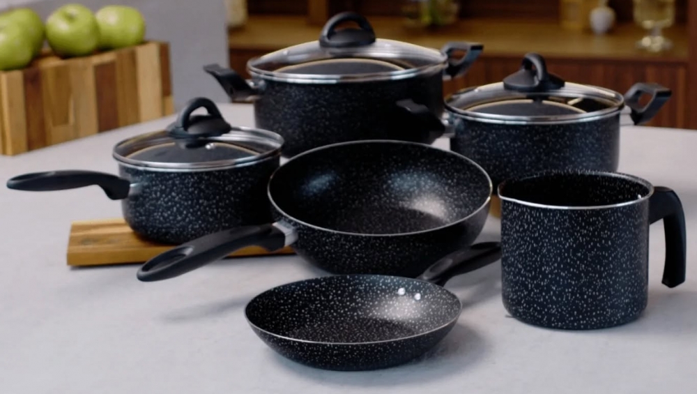 jogo de panelas rev. cerâmico 6pç. ref. 219016 Conjunto de panelas revestimento cerâmico preto 6pç. - Brinox