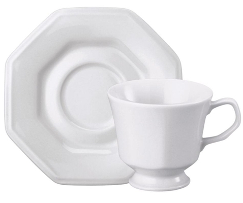 Xícara p/chá de porcelana ref. 064007 Xícara de chá com pires porcelana branca oitavada 200ml. Prisma - Schmidt