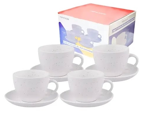 Jogo xícaras de chá 4pç. ref. 1620067 Jogo de xícaras de chá cerâmica marmorizada 4pç. - Mimo Style