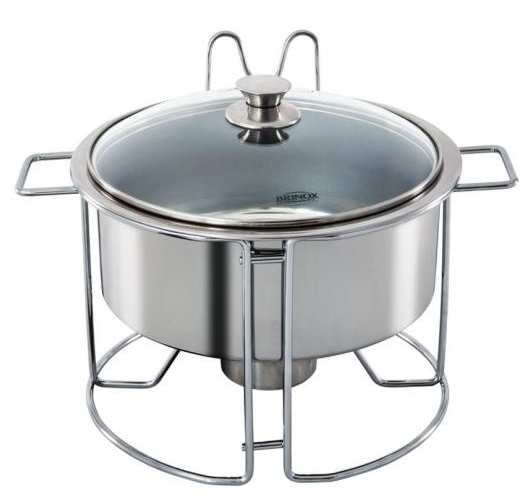 Rechaud inox redondo 7L. ref. 219155 Rechaud inox redonda tampa de vidro banho maria 7L. - Brinox