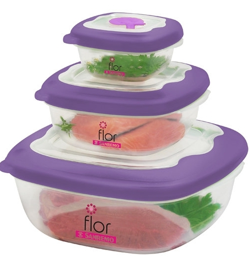 Conj. de potes ref. 0861712 Conjunto de pores quadrado 3 pç. flor -Sanremo 1 pote de 134ml. 1 pote de 530ml. 1 pote 1