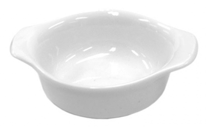 Mini assadeira redonda ref. 292038 Mini assadeira redonda com abas de porcelana branca 11cm