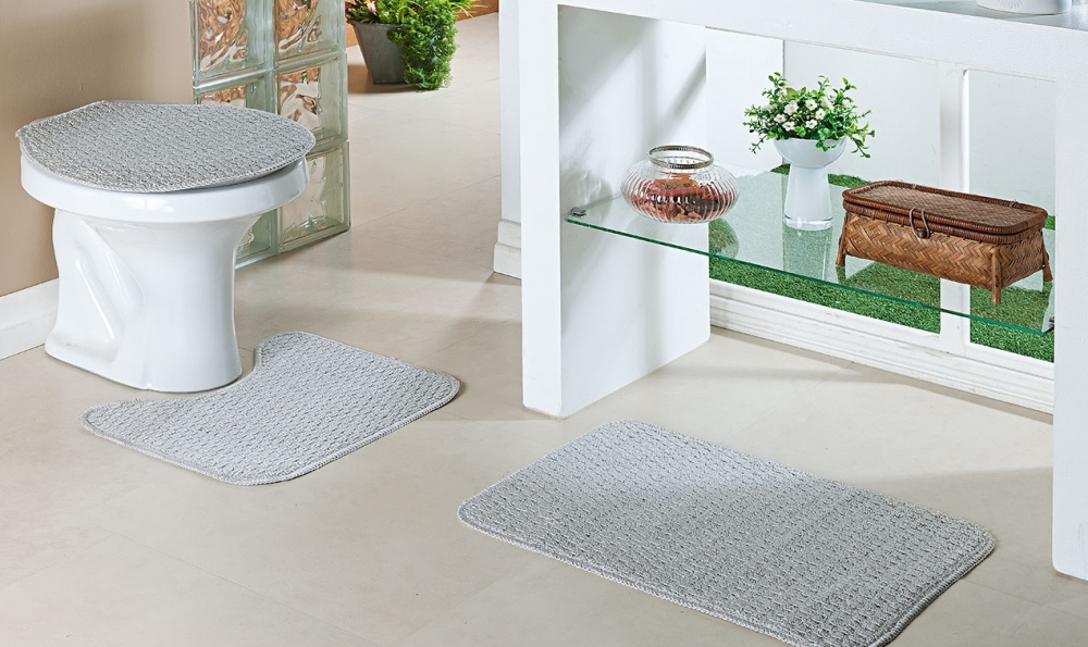 Jogo de banheiro 3pç. ref. 066045 Jogo de banheiro 3pç. Relevo Prata - Oásis Tapetes (Lavável em máqina)