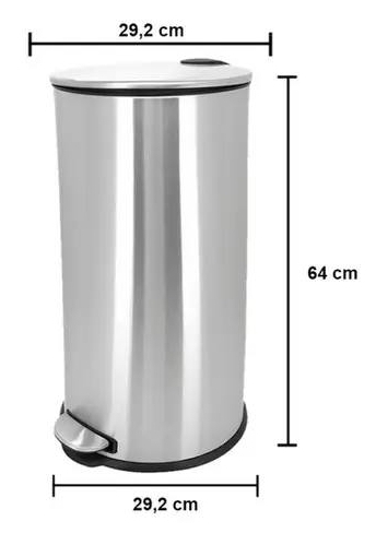 Lixeira inox c/pedal 30L. ref. 1629215 Lixeira inox com pedal e cesto removível 30L. - Mimo