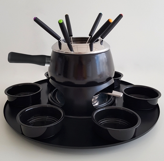 Aparelho p/fondue base giratória ref. 072098 Aparelho para fondue carrousel esmaltado Cervina preto 18pç. - Forma