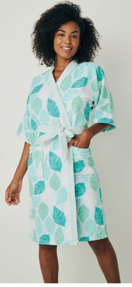 Roupão aveludado adulto M ref. 124100 Roupão aveludado adulto quimono estampado Clorofila M - Lepper