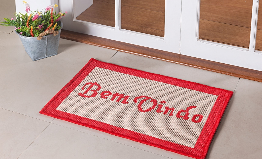 Tapete capacho ref. 066224 Tapete capacho bem vindo vermelho antiderrapante 40cmx60cm - Oásis