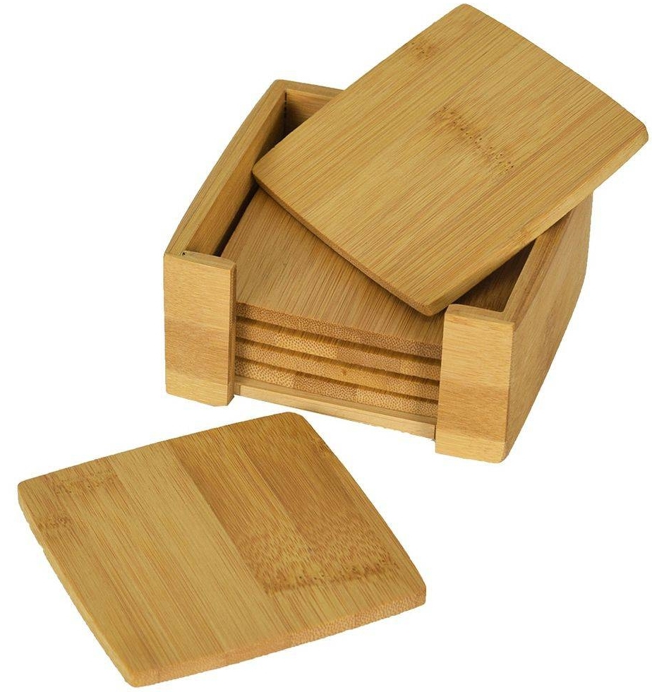 Porta copos com suporte ref. 162024 Porta copos de bambu 6pç. com suporte