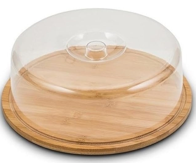 Porta bolo de bambu ref. 053330 Porta bolo de bambu redondo com tampa em acrílico 28cm