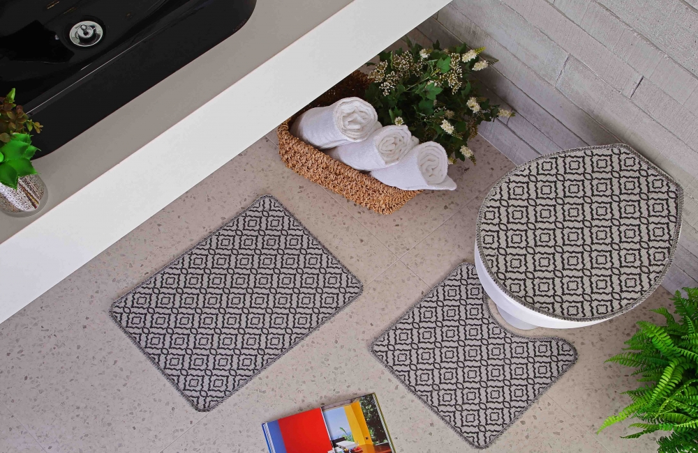 Jogo de banheiro 3pç. ref. 066070 Jogo de tapetes para banheiro 3pç. Pratic Capri cinza - Oasis