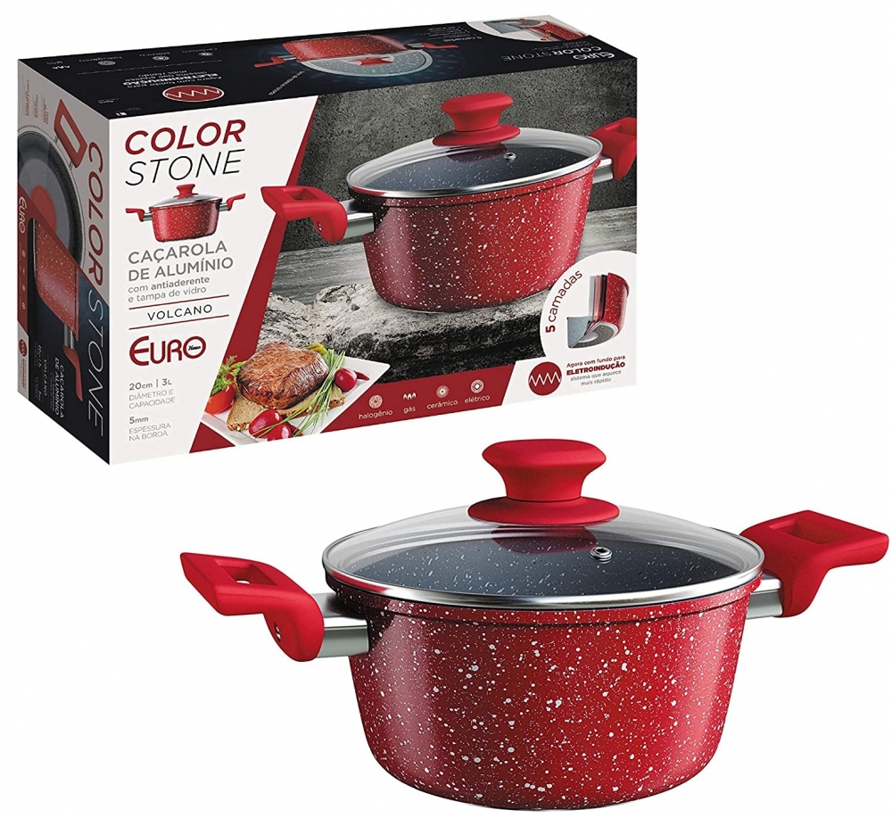 Caçarola Colorstone 20cml ref. 112320 Caçarola antiaderente Colorstone Volcano vermelha 20cm fundo para eletroindução - Euro