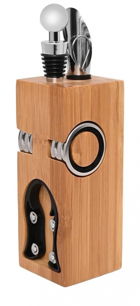 Kit p/vinho com suporte ref. 162383 Kit para vinho com suporte bambu 6pç. - Mimo