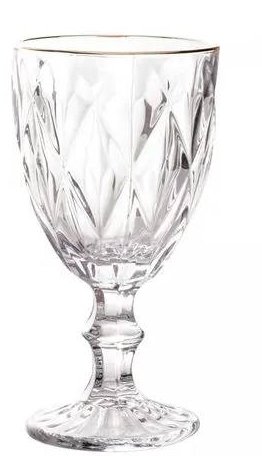 Taça diamond borda dourada 330ml. ref. 0751347 Taça de vidro clean Diamond borda dourada 330ml.