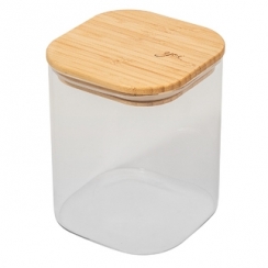 Pote quadrado tampa bambu 520ml.