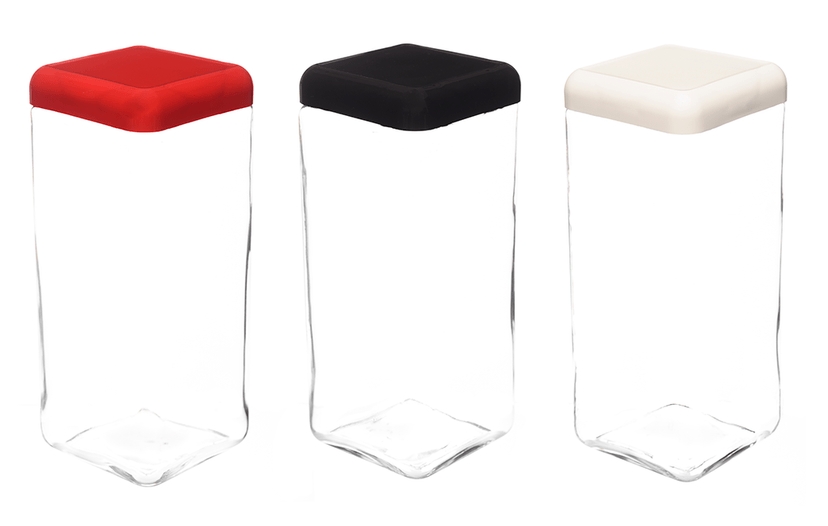 Pote de vidro quadrado 2L. ref. 054320 Pote de vidro quadrado tampa várias cores 2L. - Invicta