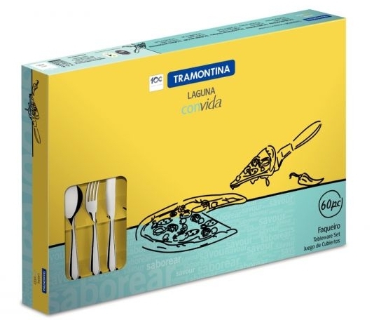 Faqueiro 60pç inox ref. 016971 Faqueiro 60 pç. laguna inox -Tramontina 12 colheres de mesa 12 garfos de mesa 12 facas de mesa/churrasco 12 colheres p/café 12 colheres de sobremesa