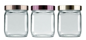 Pode de vidro 750ml. ref. 054300 Pote de vidro com tampa quadrado metalizado 750ml. - Invicta