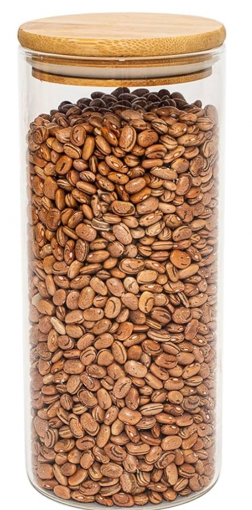 Pote de vidro c/tampa bambu 990ml. ref. 1921935 Pote de vidro redondo tampa de bambu 990ml. 10cmx15cm