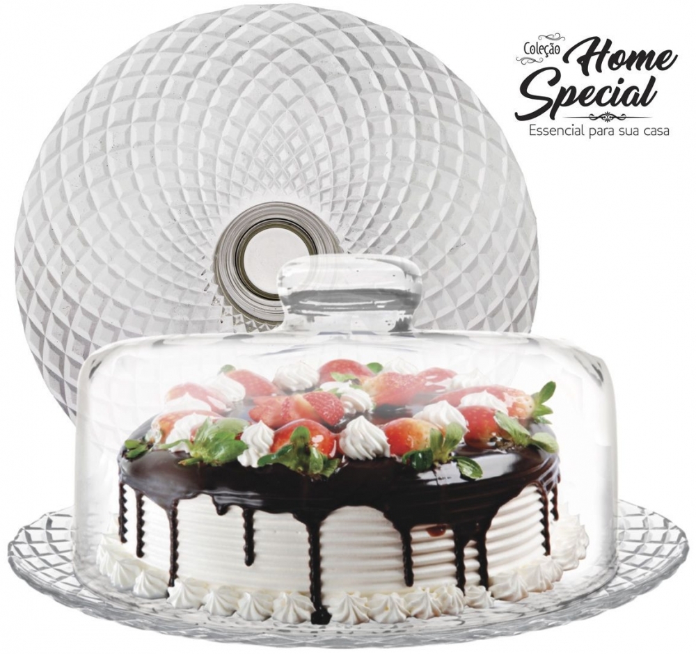 Boleira com tampa ref. 3374537 Boleira de vidro com tampa Ravena 32cm - Ruvolo