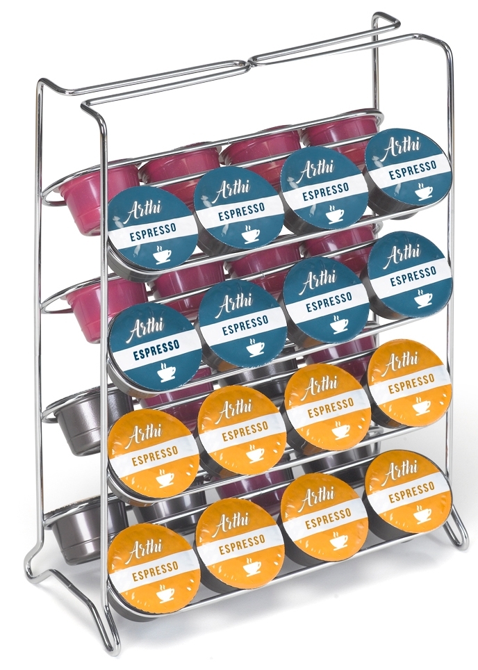 Porta cápsula 3 corações ref. 0651622 Suporte para 32 capsulas de café três corações aço cromado C.19,6cmxL.9,7cmxxA.27,7cm - Arthi