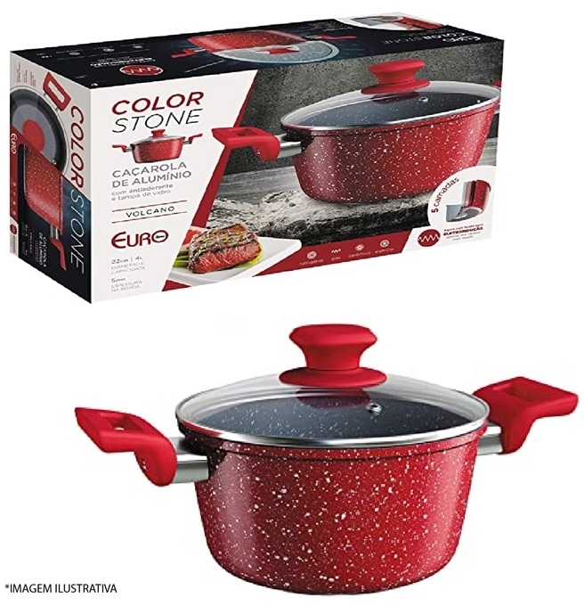 Caçarola antiaderente Colorstone Volcano vermelha 22cm fundo para eletroindução - Euro