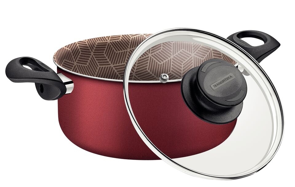 Caçarola antiaderente Paris vermelha tampa de vidro Nº22 3,8L. 28524/722 - Tramontina