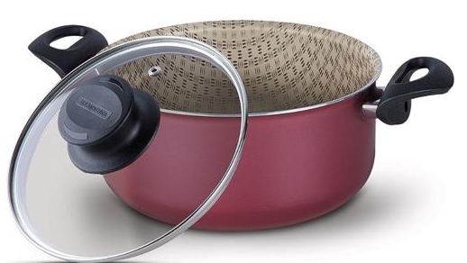 Caçarola Paris antiaderente vermelha tampa de vidro Nº28 - Tramontina