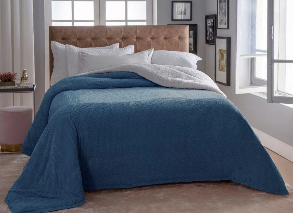 Cobertor casal com sherpa tranças azul 1,80mx2,20m - Jolitex