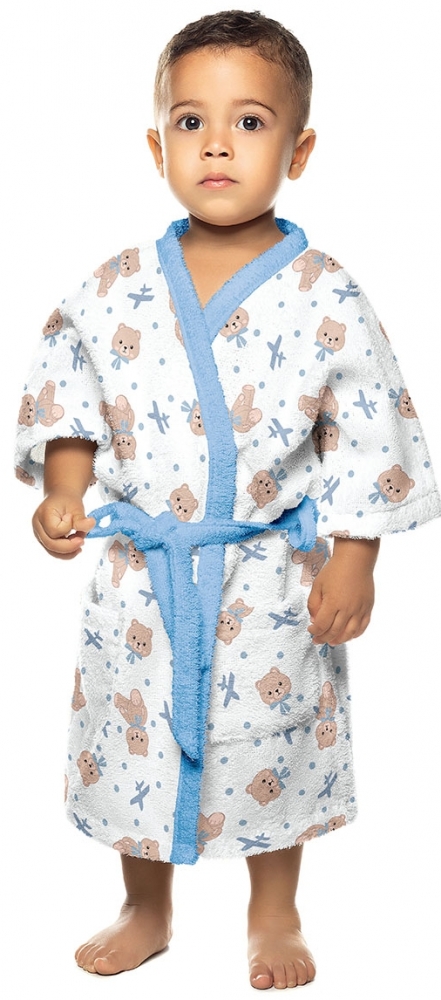 Roupão mini felpudo estampado quimono PP (1 a 3 anos) - Lepper