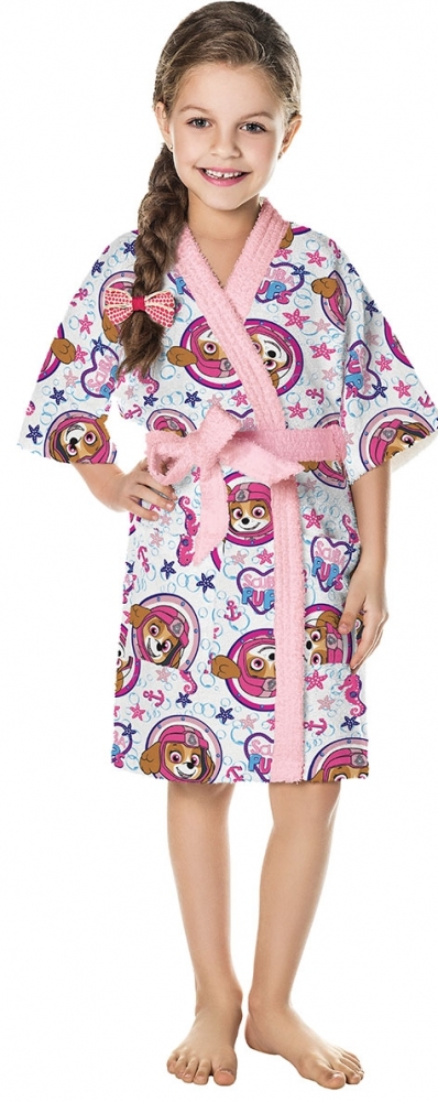 Roupão infantil estampado felpudo quimono Patrulha Canina rosa PP(1 a 3 anos)