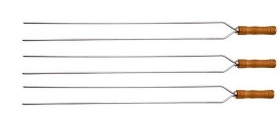 Espeto duplo de aço niquelado cabo de madeira 75cm - Viel